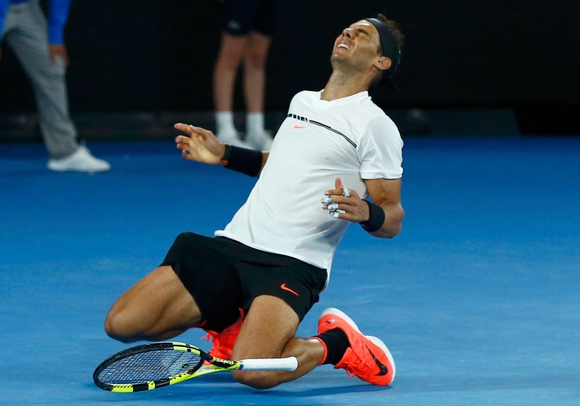 Hace ya un tiempo empecé a pensar que debe haber habido pocos deportistas (no tenistas) en la historia con la capacidad competitiva de Rafael Nadal Parera. Ese afán por superarse sobrepasando los límites. Esas ganas de lograr imponerse siempre, sean las condiciones que sean, le han llevado a poder presumir de proezas como la de ser el segundo tenista con más grandes. Viéndolo con perspectiva, el ejemplo más reciente es el del viernes contra Dimitrov. El marcador indicaba en el quinto y definitivo parcial un 4-3 favorable al búlgaro, que disponía de un 15-40 para casi finiquitar el encuentro. Rafa, sin margen de fallo, salvó las bolas de ruptura y terminó saliendo airoso cuando ya muchos lo veían derrotado.
